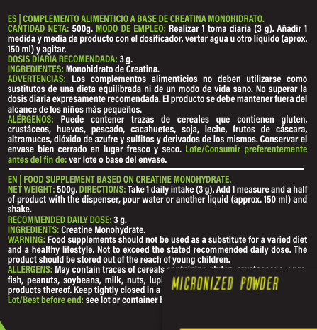 COMPLEMENTO ALIMENTICIO A BASE DE CREATINA MONOHYDRATE.